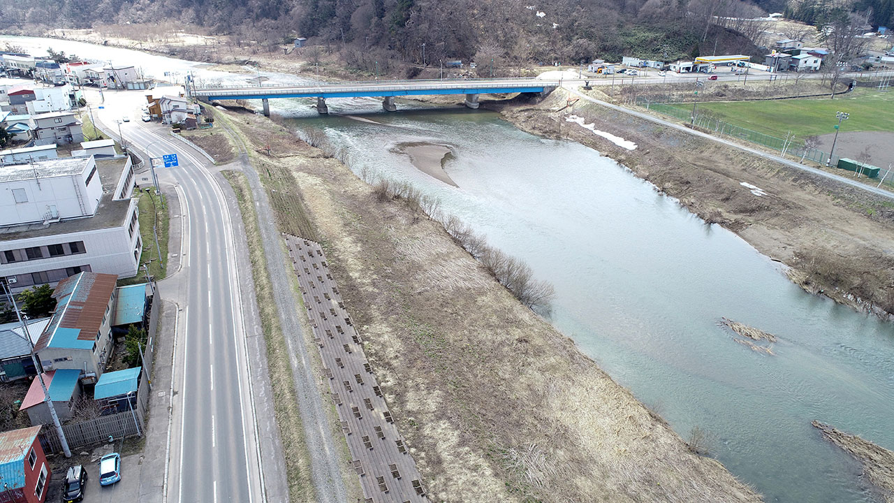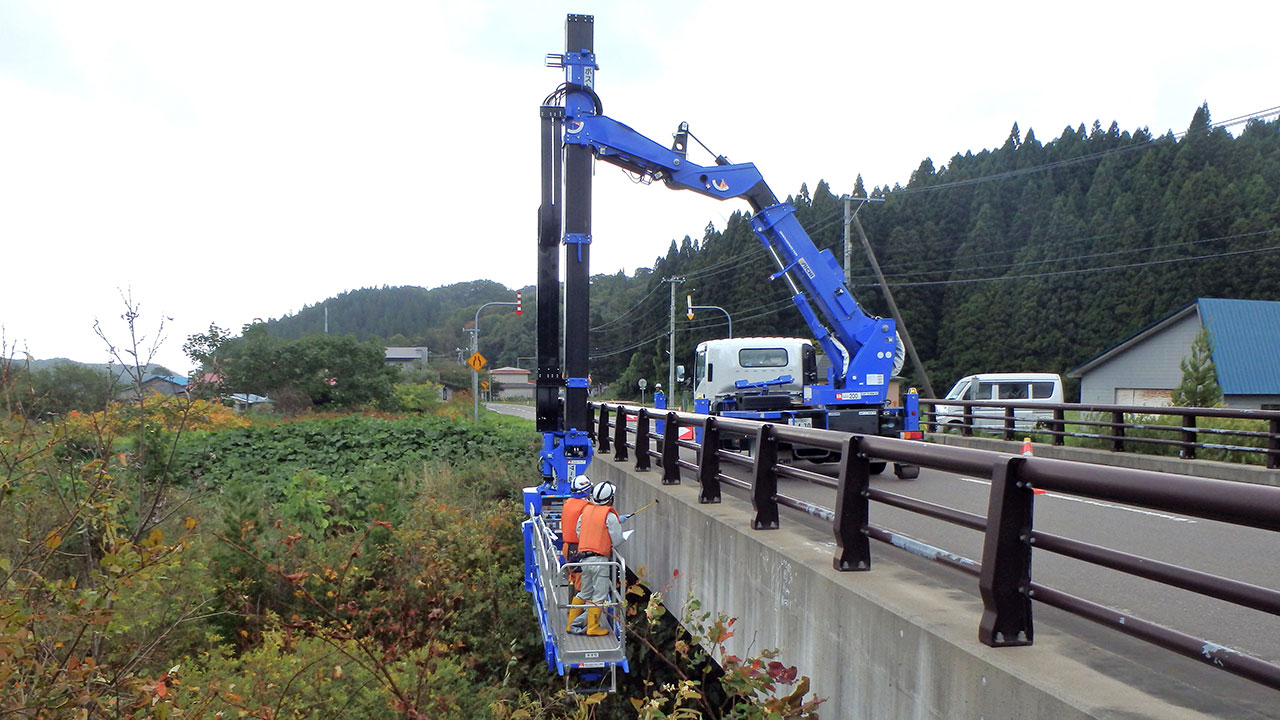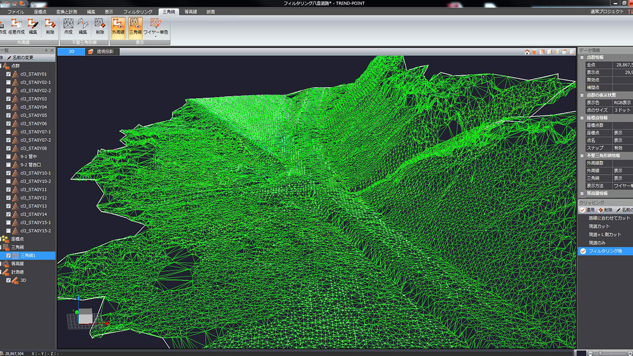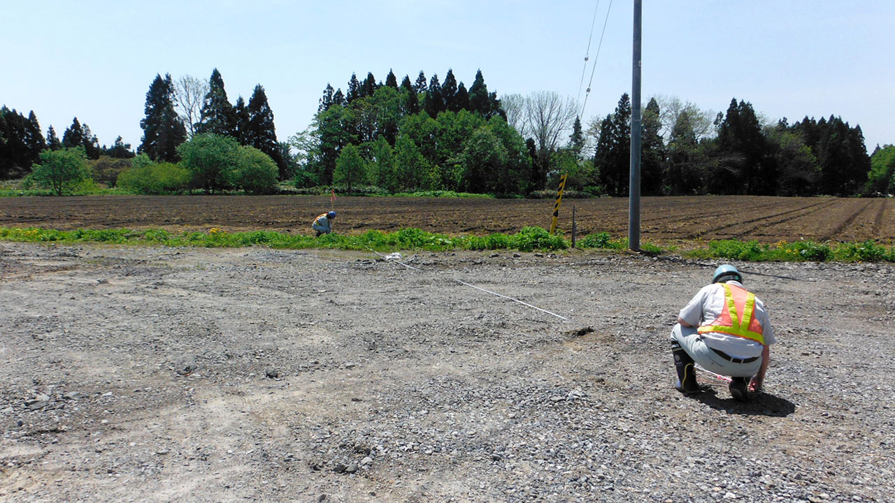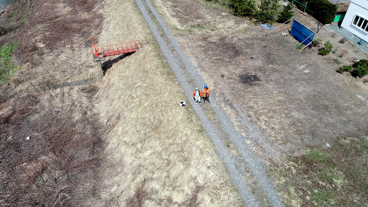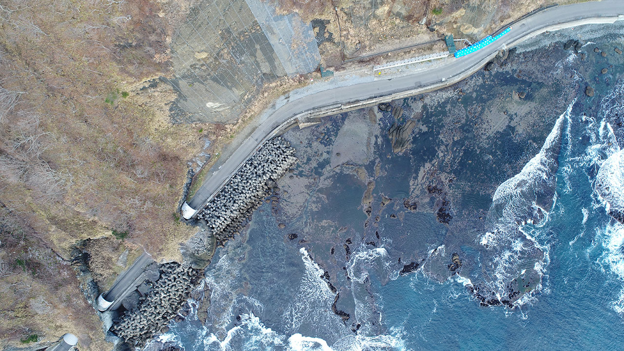 調査・測量・設計にはCIM(3次元モデル)やUAV(無人航空機)を導入しています。上空からはドローン、地上では3Dレーザースキャナーなどの最新機器を使って空間状況をデータベース化します。現地のフィールドワークにおいては作業時間が短縮でき、危険をともなう場所や計測しずらい道路も無人探索機なので、作業員の安全も確保されるといったメリットがあります。デジタル解析された膨大な3次元情報はデスクワークにおいてあらゆる角度から検討可能であり、設計前の調査、その後の具体的なプランの精度が格段に向上します。この他にも人工衛星の電波を利用したGNSS測量や音響測深機による水深調査など、陸海空のあらゆる事象に対して当社が誇るテクノロジーを適用しています。