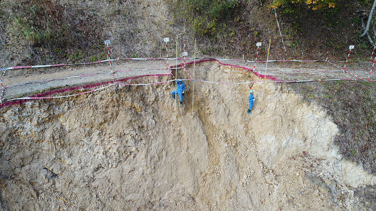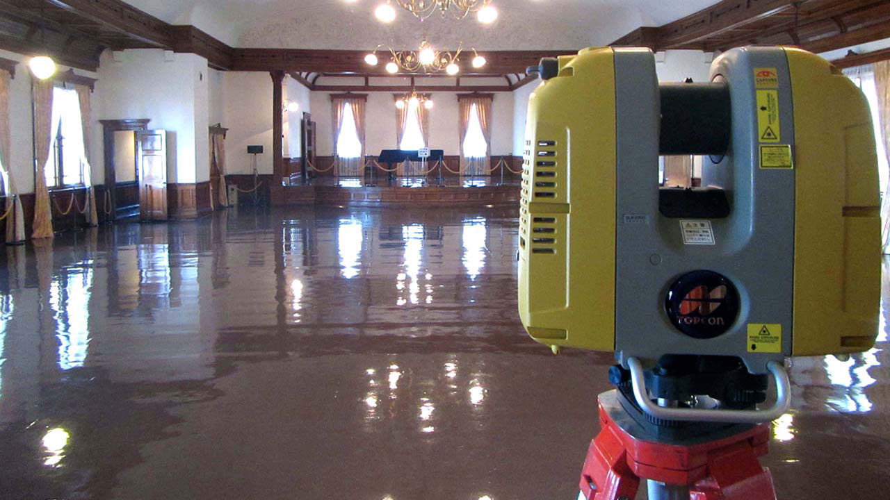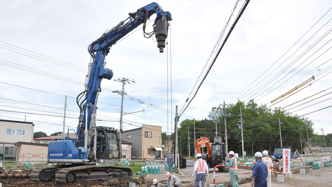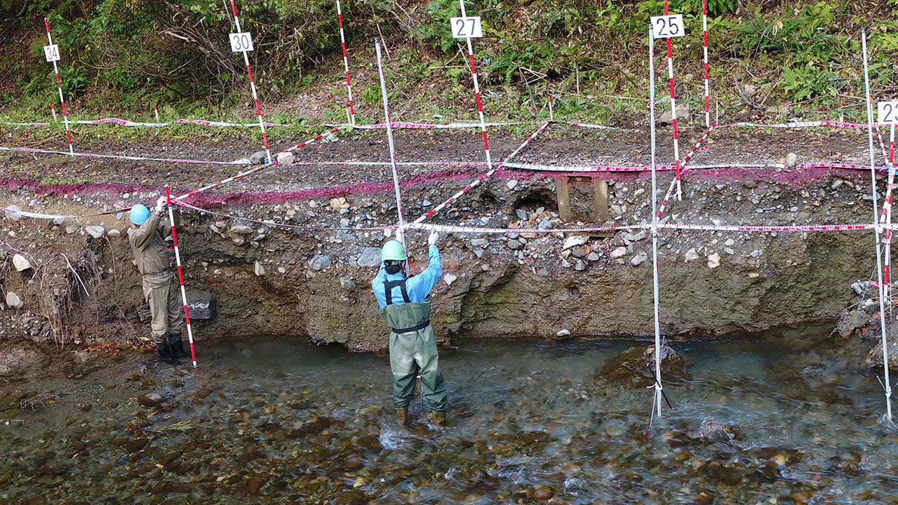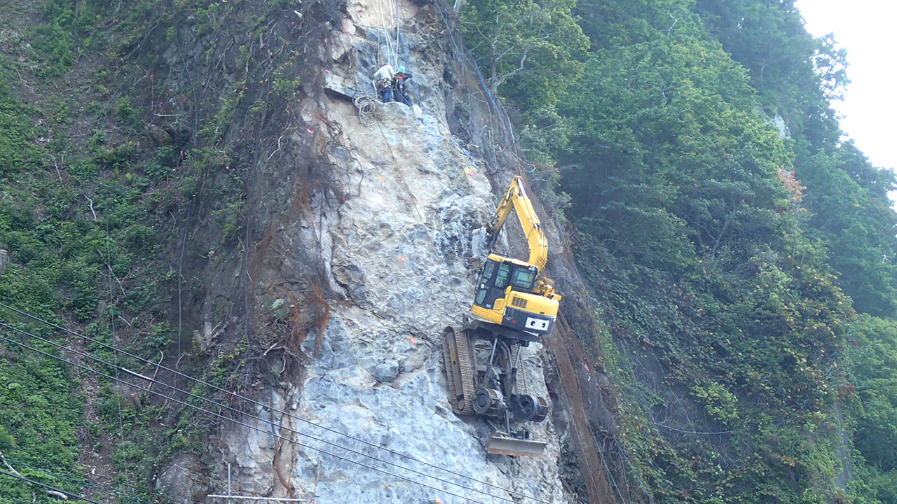 調査・測量・設計にはCIM(3次元モデル)やUAV(無人航空機)を導入しています。上空からはドローン、地上では3Dレーザースキャナーなどの最新機器を使って空間状況をデータベース化します。現地のフィールドワークにおいては作業時間が短縮でき、危険をともなう場所や計測しずらい道路も無人探索機なので、作業員の安全も確保されるといったメリットがあります。デジタル解析された膨大な3次元情報はデスクワークにおいてあらゆる角度から検討可能であり、設計前の調査、その後の具体的なプランの精度が格段に向上します。この他にも人工衛星の電波を利用したGNSS測量や音響測深機による水深調査など、陸海空のあらゆる事象に対して当社が誇るテクノロジーを適用しています。