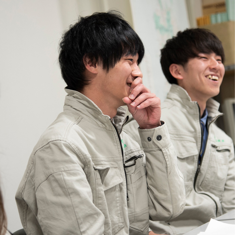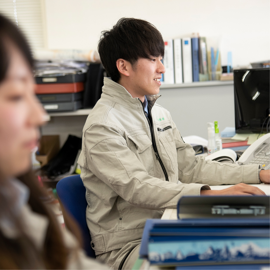 「みんな出身校は同じなんですよね。私は卒業後、東京に本社を置くゼネコンに入社しました。港湾の工事をメインに行う会社で、羽田空港や茨城空港、沖縄の那覇空港などの工事をしていたのですが、去年、Uターンしてここに入ったんです」
